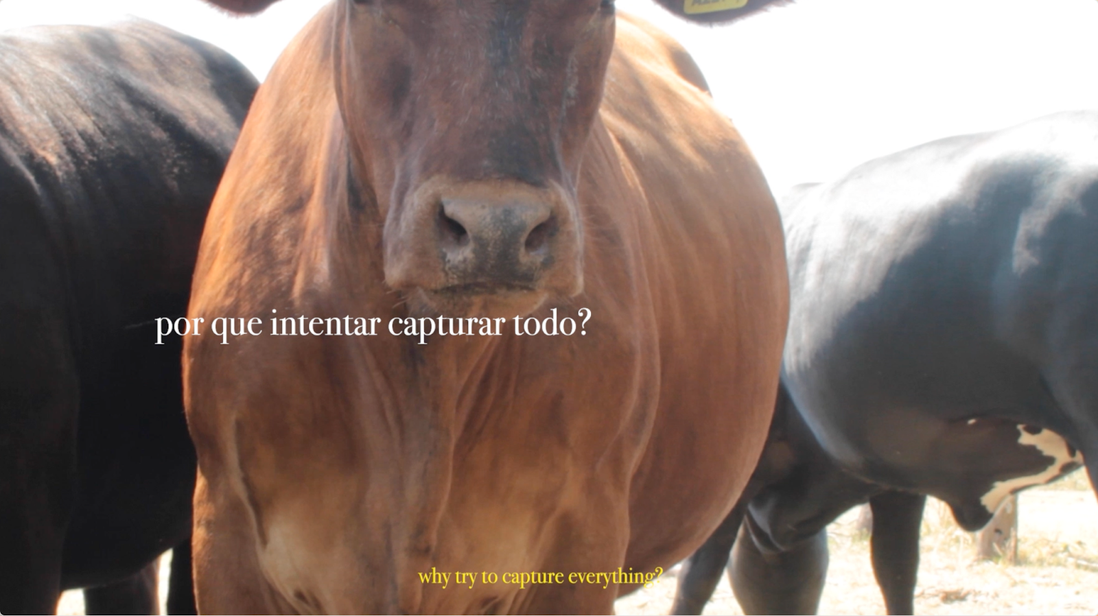Rats are part of our shared ecosystem in New York. I chose them because they are resilient creatures, often feared and overlooked. They live with our garbage, feed on our garbage, and are treated as garbage. The cow, on the other hand, is more of a personal choice for me. My father works with cattle genetics, so I grew up surrounded by bulls and cows. The footage in the piece is mine, filmed on a farm in Argentina, in the province of Entre Ríos. I just sat with my camera on and let the cows approach me.