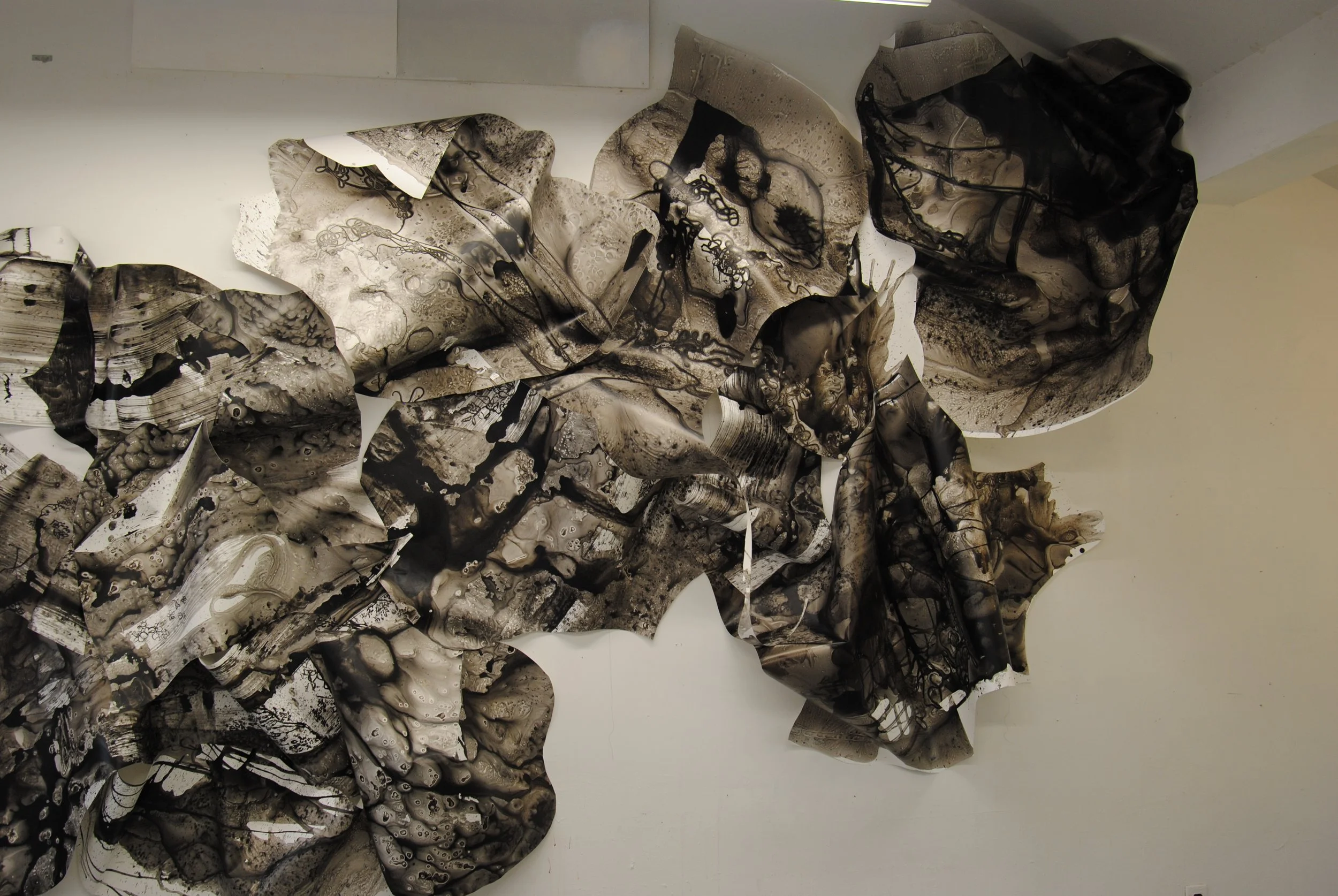 Because I was in school, I had to make artwork. Otherwise, I would fail out. So it became tricky, every time I tried to create it was a portal to the past. Abstract work helped with this. I started to create large abstract works where my anger and sadness could pour out. I did this for four years, no more narrative paintings, just abstract ink pieces. They got bigger and increasingly aggressive. Then I started to display them. I would rip parts of the works and display those, it felt like I was taking care of my ten-year-old self. Acknowledging her. The perspective and power these works gave me, along with being a mom, allowed me to find peace. I hugged my past self with the peace I found. This is what I wanted to do moving forward, show that understanding to other people. I finally felt I could move on.